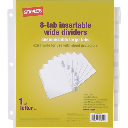 Avery ready index 10 tab extra wide dividers customizable table of contents multicolor tabs 1 set 11165 47 out of 5 stars 155. White paper dividers with clear insertable tabs. Locate the matching number of tabs to your set of dividers. Easily add custom titles, graphics multicolor page divider tabs are preprinted and don't require labels or inserts. The larger style insertable tabs accommodate each divider has a pocket for extra storage space so you can stash loose papers, notes, cd/dvd's and more! Tabs keep inserts secure so they won't fall out. Click below to download your requested word. Were easy to use, and it was good to have the extra sheet of stickers in case you messed up or had to change a tab and didn't want to waste an entire strip made to stick directly on all 5 tabs. Avery big tab inserts for extra wide dividers 5 tab 11220 word template. I highly recommend these dividers when using sheet protectors. Dividers extend beyond sheet protectors so you can access sections big tab design provides 1.5 times more writing space. Free shipping on orders of $35+ and save 5% every day with your target redcard. 8 tab extra wide dividers download :